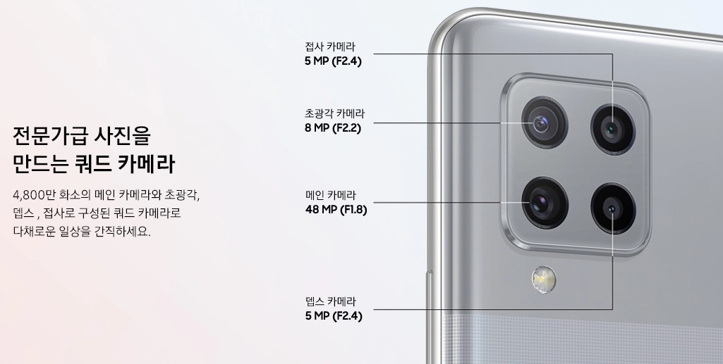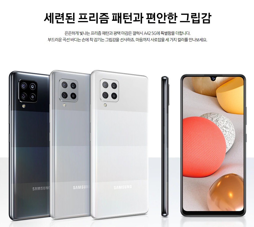 갤럭시A42는 5G통신망을 사용하는 기종으로 출고가 40만원대, 그동안 출시됐던