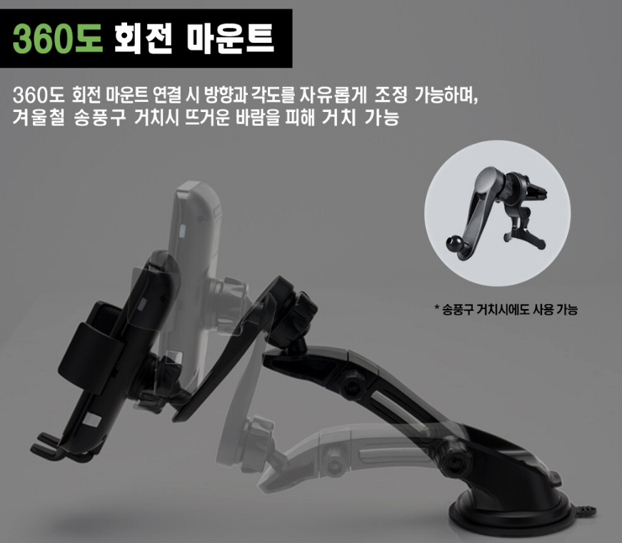 거치대를 송풍구와 대시보드로 나눠 사용 환경에 맞게 선택할 수 있는 폭을 넓힌 것도 좋은 것 같습니다.