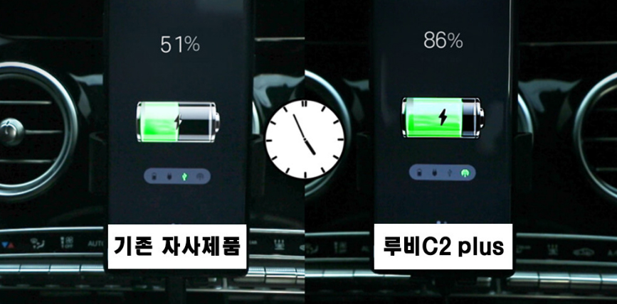 힘없이 송풍구에서 분리되는 약한 거치대와는 달리 루비 스마트 무선충전기는