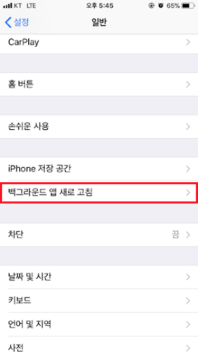 설정에 가셔서 일반 > 백그라운드 앱 새로 고침(끔)으로 변경해줍니다.